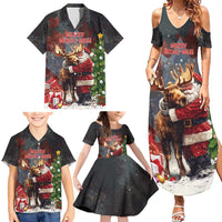 Christmas Canada Family Matching Summer Maxi Dress and Hawaiian Shirt Merry Moose-Mas Santa Hugging A Moose