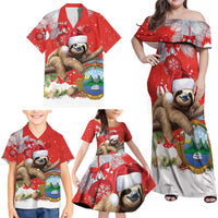 Christmas Costa Rica Family Matching Off Shoulder Maxi Dress and Hawaiian Shirt A Cheerful Sloth Wearing a Santa Hat