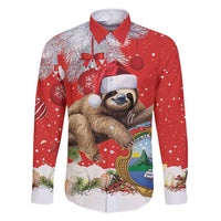 Christmas Costa Rica Family Matching Short Sleeve Bodycon Dress and Hawaiian Shirt A Cheerful Sloth Wearing a Santa Hat LT18