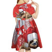 Christmas Costa Rica Kid Short Sleeve Dress A Cheerful Sloth Wearing a Santa Hat LT18