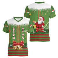 Christmas Costume Elf Women V-Neck T-Shirt Santa Little Helper Green