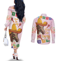 Cinco De Derby Couples Matching Off The Shoulder Long Sleeve Dress and Long Sleeve Button Shirt 2025 Sombrero Horse Racing LT14