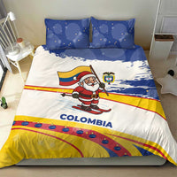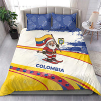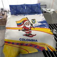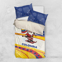 Colombia Christmas Bedding Set with Santa Skiing Colombian Flag and Holiday Ornament