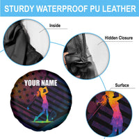 Colorful Golf Spare Tire Cover Watercolor American Flag Female Golfer Silhouette in Rainbow Gradient