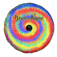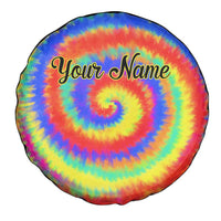 Colorful Tie Dye Spiral Goft Spare Tire Cover Custom Name in Retro Psychedelic Style Design TS04