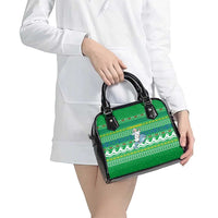 Comoros Christmas Shoulder Handbag with Santa Riding Dolphin Ocean Waves Crescent Moon and Tribal Pattern