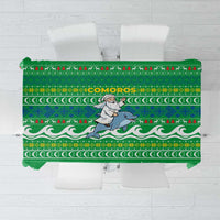 Comoros Christmas Tablecloth with Santa Riding Dolphin Ocean Waves Crescent Moon and Tribal Pattern TS04