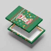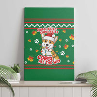 Corgi Dog Lights Corgi Bells Corgi All the Way Canvas Wall Art wirh Green Snowflake Pattern Design