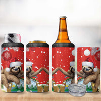 Costa Rica Christmas 4 in 1 Can Cooler Tumbler A Cheerful Sloth Wearing a Santa Hat