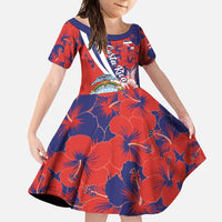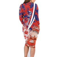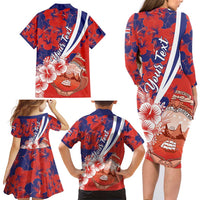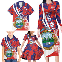 Costa Rica Family Matching Long Sleeve Bodycon Dress and Hawaiian Shirt Coat of Arms Hibiscus Pattern LT01