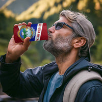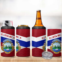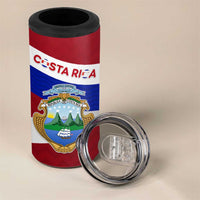 Costa Rica Flag 4 in 1 Can Cooler Tumbler Red White Blue with National Coat of Arms and Shield Design