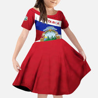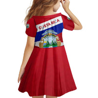 Costa Rica Flag Family Matching Off Shoulder Maxi Dress and Hawaiian Shirt Red White Blue with National Coat of Arms and Shield Design
