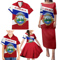 Costa Rica Flag Family Matching Puletasi and Hawaiian Shirt Red White Blue with National Coat of Arms and Shield Design