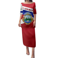 Costa Rica Flag Family Matching Puletasi and Hawaiian Shirt Red White Blue with National Coat of Arms and Shield Design TS04