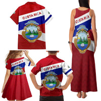 Costa Rica Flag Family Matching Tank Maxi Dress and Hawaiian Shirt Red White Blue with National Coat of Arms and Shield Design
