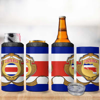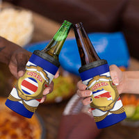 Costa Rica Flag Map 4 in 1 Can Cooler Tumbler Red White Blue with National Colors and Gold Crest Design TS04
