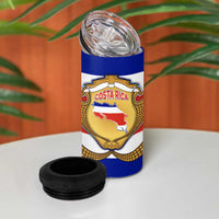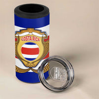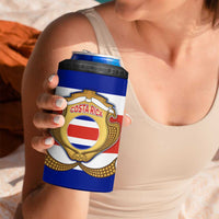Costa Rica Flag Map 4 in 1 Can Cooler Tumbler Red White Blue with National Colors and Gold Crest Design