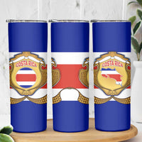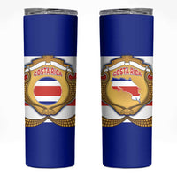 Costa Rica Flag Map Skinny Tumbler Red White Blue with National Colors and Gold Crest Design