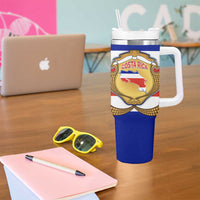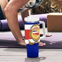 Costa Rica Flag Map Tumbler With Handle Red White Blue with National Colors and Gold Crest Design TS04