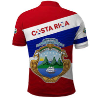 Costa Rica Flag Polo Shirt Red White Blue with National Coat of Arms and Shield Design
