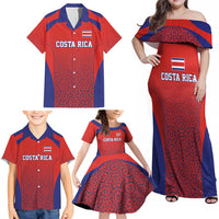 Costa Rica Football Custom Family Matching Off Shoulder Maxi Dress and Hawaiian Shirt Los Ticos Go Champions LT9