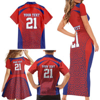 Costa Rica Football Custom Family Matching Short Sleeve Bodycon Dress and Hawaiian Shirt Los Ticos Go Champions LT9