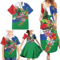 Costa Rica Guanacaste Day Family Matching Summer Maxi Dress and Hawaiian Shirt Resplendent Quetzal Tropical Flowers
