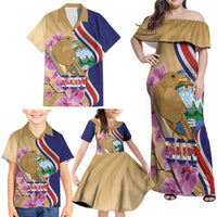Costa Rica Independence Day Family Matching Off Shoulder Maxi Dress and Hawaiian Shirt 506 Proud Yiguirro With Orchid