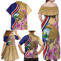Costa Rica Independence Day Family Matching Off Shoulder Maxi Dress and Hawaiian Shirt 506 Proud Yiguirro With Orchid LT14