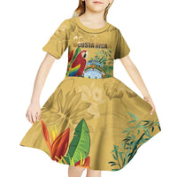 Costa Rica Independence Day Kid Short Sleeve Dress Scarlet Macaw Parrot Tropical Flowers LT18