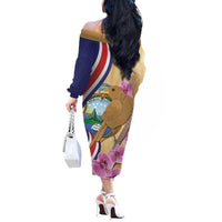 Costa Rica Independence Day Off The Shoulder Long Sleeve Dress 506 Proud Yiguirro With Orchid