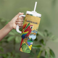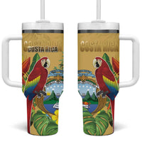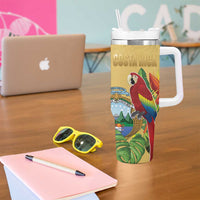 Costa Rica Independence Day Tumbler With Handle Scarlet Macaw Parrot Tropical Flowers