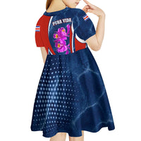 Costa Rica Orchid Kid Short Sleeve Dress Red and Blue with National Emblem and Purple Flower Design TS04