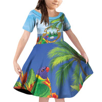 Costa Rica Parrot Tropical Flowers Family Matching Off Shoulder Short Dress and Hawaiian Shirt LT9