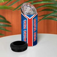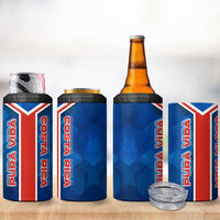 Costa Rica Pura Vida 4 in 1 Can Cooler Tumbler Blue Geometric with Red Stripe and National Flag Detail