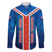Costa Rica Pura Vida Family Matching Mermaid Dress and Hawaiian Shirt Blue Geometric with Red Stripe and National Flag Detail TS04