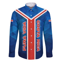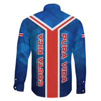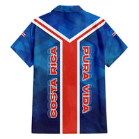 Costa Rica Pura Vida Family Matching Off The Shoulder Long Sleeve Dress and Hawaiian Shirt Blue Geometric with Red Stripe and National Flag Detail TS04