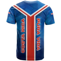 Costa Rica Pura Vida T Shirt Blue Geometric with Red Stripe and National Flag Detail