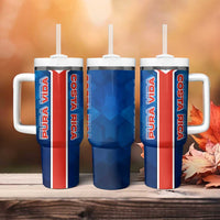 Costa Rica Pura Vida Tumbler With Handle Blue Geometric with Red Stripe and National Flag Detail