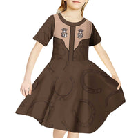 Cowcat Kid Short Sleeve Dress Cowboy Cat Meowdy Retro Western Yoke Brown