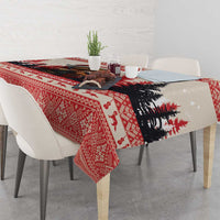 Croatia Christmas Tablecloth Pine Marten Playing Violin - Red Color