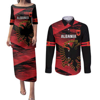 Custom Albania Football Couples Matching Puletasi and Long Sleeve Button Shirt Go Kuqezinjte - Grunge Style