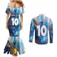 Custom Argentina Football Couples Matching Mermaid Dress and Long Sleeve Button Shirt La Albiceleste Marble Sky Version