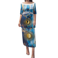 Custom Argentina Football Family Matching Puletasi and Hawaiian Shirt La Albiceleste Marble Sky Version