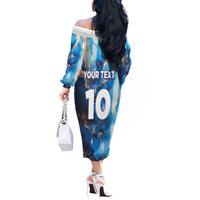 Custom Argentina Football Off The Shoulder Long Sleeve Dress La Albiceleste Marble Sky Version