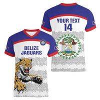 Custom Belize Football Women V-Neck T-Shirt 2025 Go Jaguars