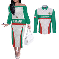 Custom Bulgaria Football Couples Matching Off The Shoulder Long Sleeve Dress and Long Sleeve Button Shirt Bulgarian Pattern Sporty Style
