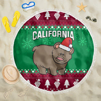 Custom California Christmas Beach Blanket Santa Grizzly Bear With Grape