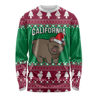 Custom California Christmas Long Sleeve Shirt Santa Grizzly Bear With Grape