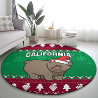 Custom California Christmas Round Carpet Santa Grizzly Bear With Grape LT01
